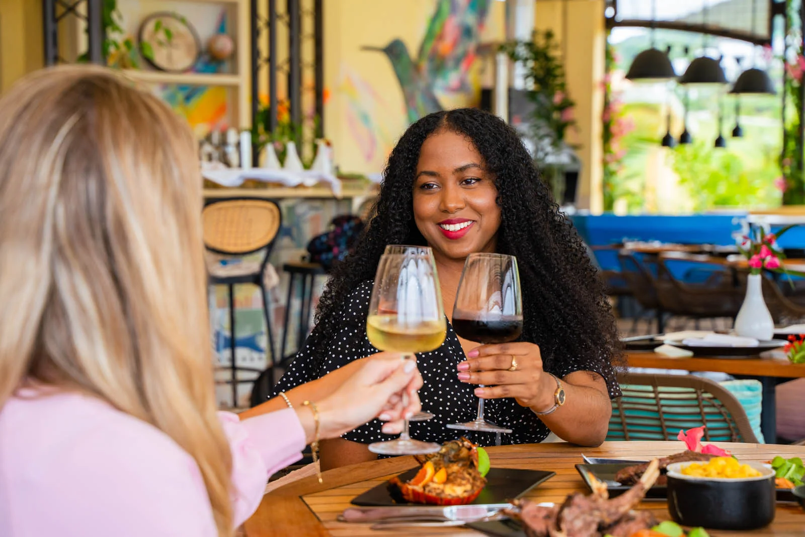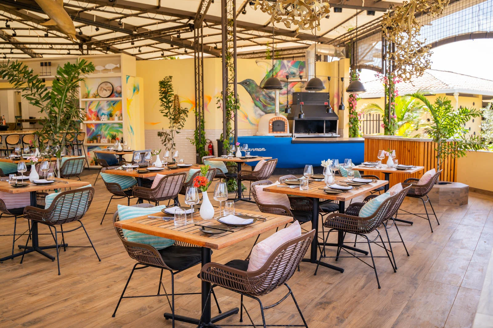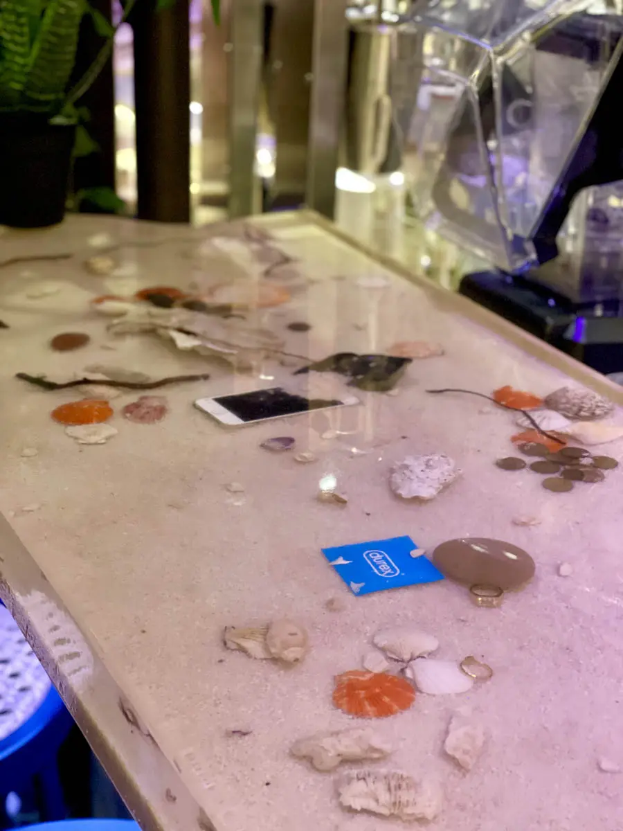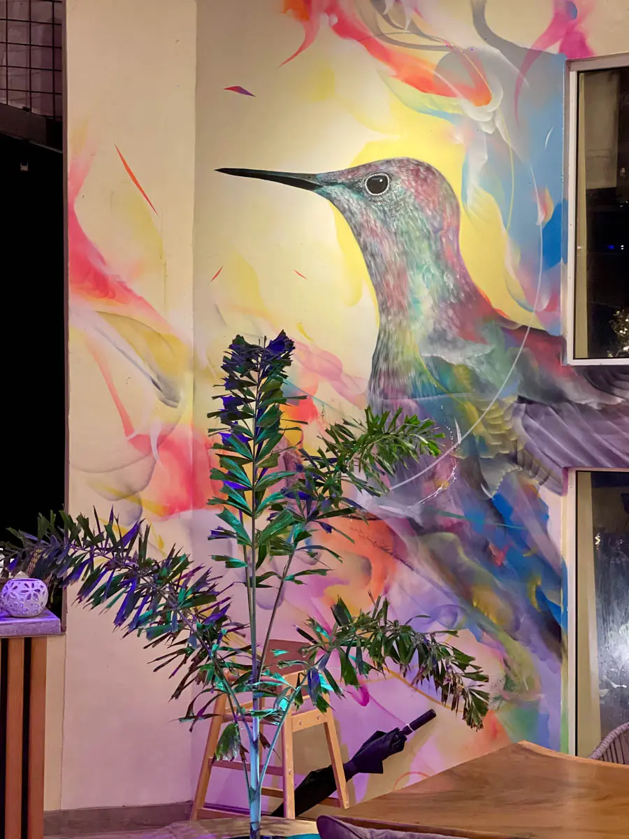 The art at Bobbie’s catches our attention immediately when you walk in, beautiful colorful hummingbirds on the walls created by graffiti street artist L7matrix. The epoxy bar top is also an eyecatcher and will make you laugh. It’s filled with elements that were found in the ocean, from old mobile phones to jewelry and other fun stuff… Check it out while you’re there!